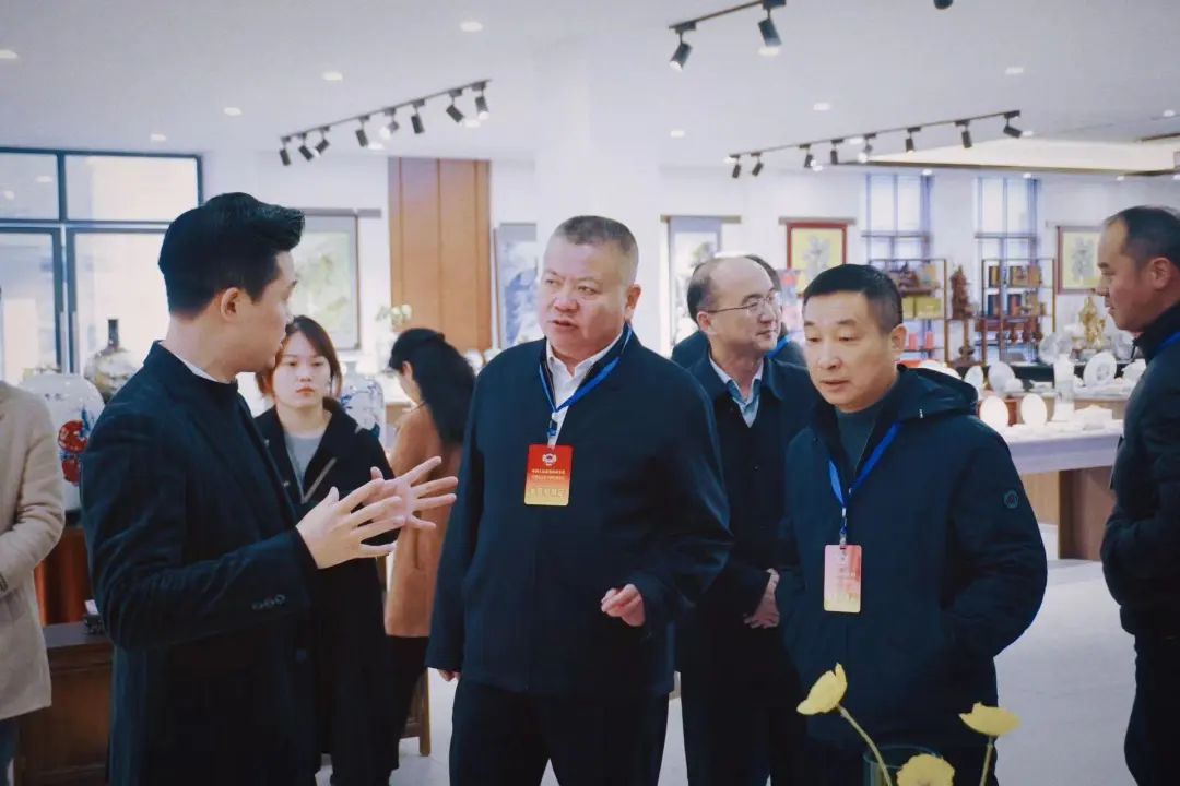 隨后公司總經理高劍偉在會議室向俞小平主席一行匯報了辰天陶瓷近況,詳細介紹了與辰天陶瓷合作的國內外知名品牌,作為首批“景德鎮制”官方授權的企業之一,辰天陶瓷已將“景德鎮制”商標廣泛應用于所生產的陶瓷產品中,將傳統文化與現代創新相結合,為景德鎮陶瓷文化的發展貢獻出自己的一份微薄之力。