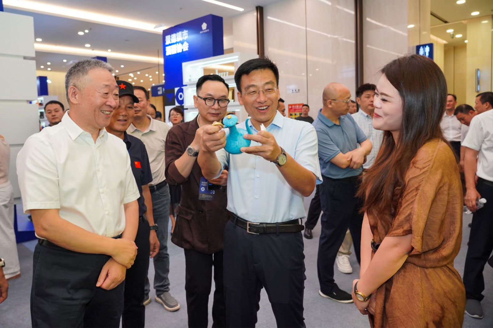 (宋書玉理事長,陳克龍市長蒞臨辰天展位,鑒賞“流光”酒具)